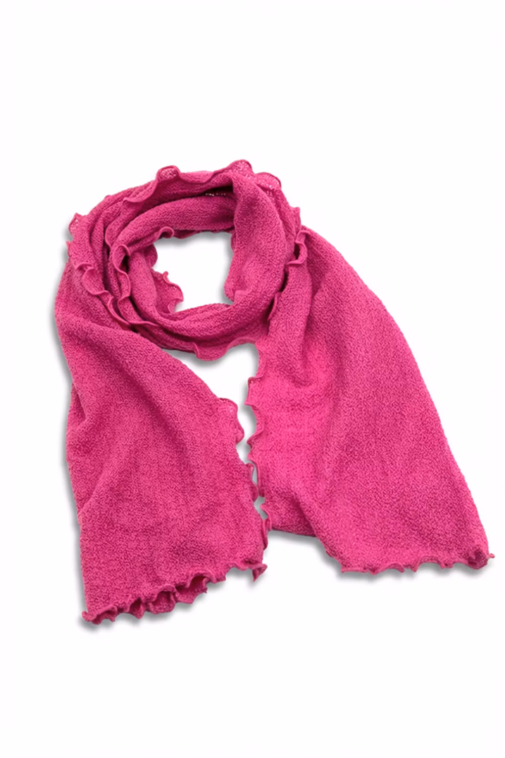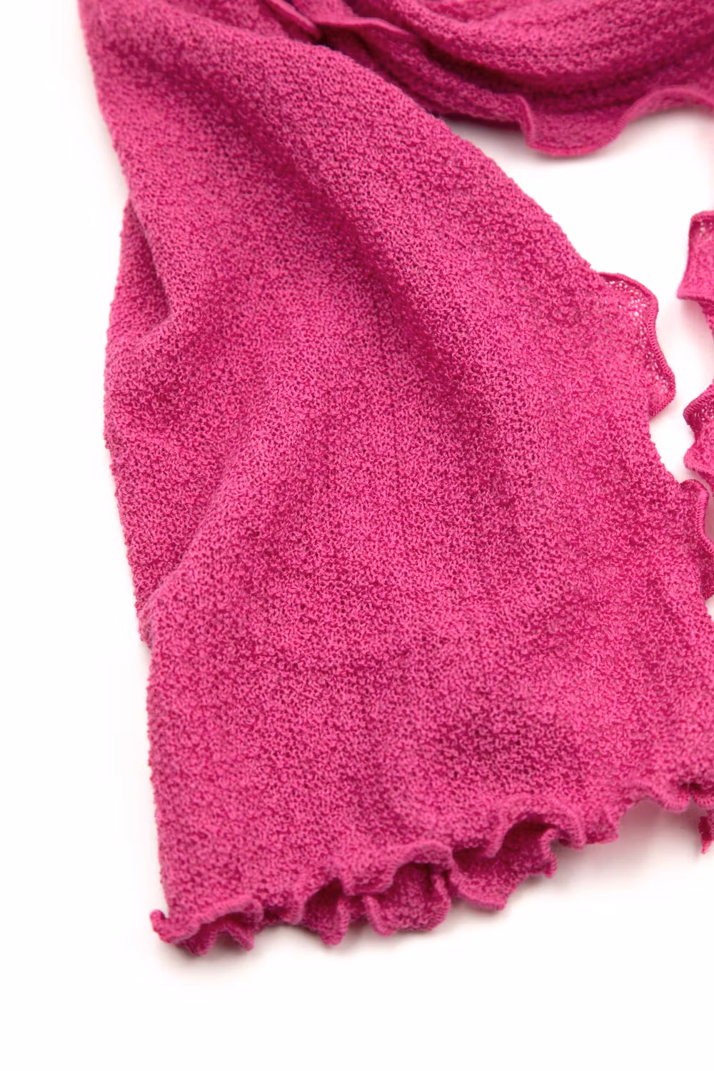 Rak sjal i vår mosstickning 190 x 30 cm. Färg Rosa, 100% ull.