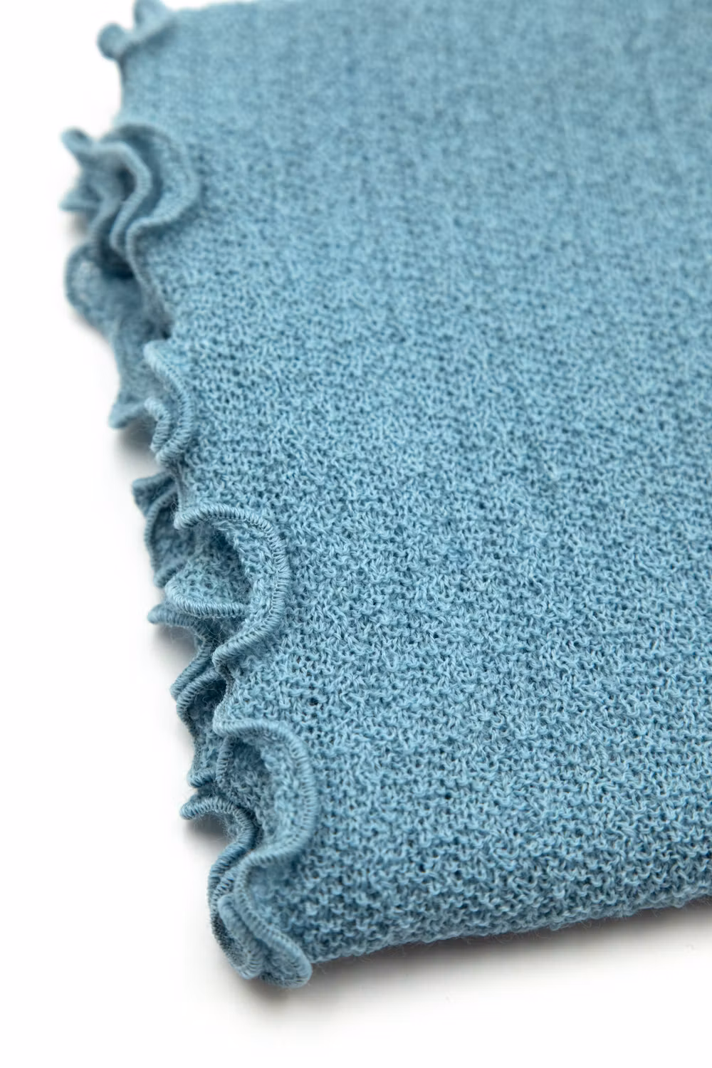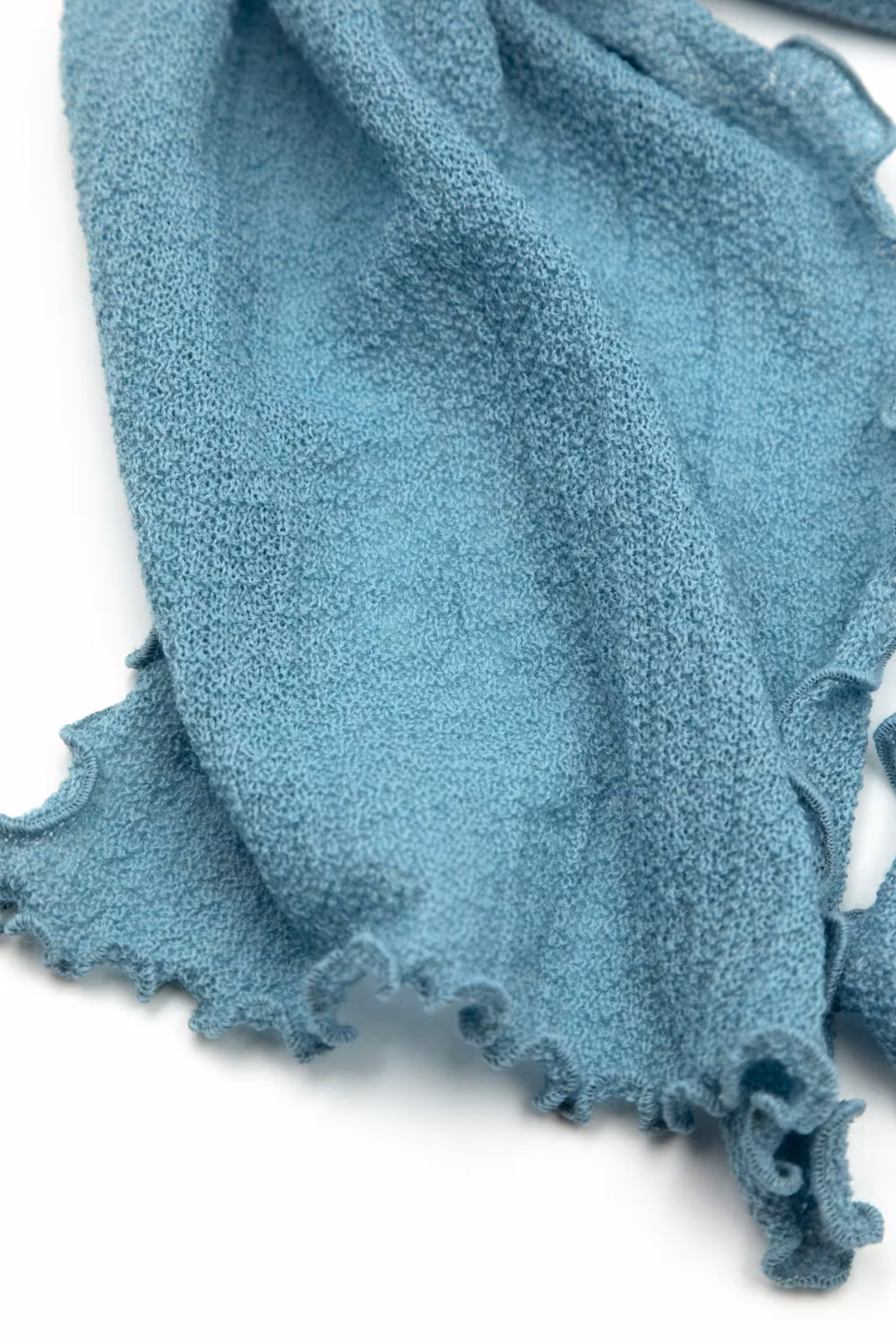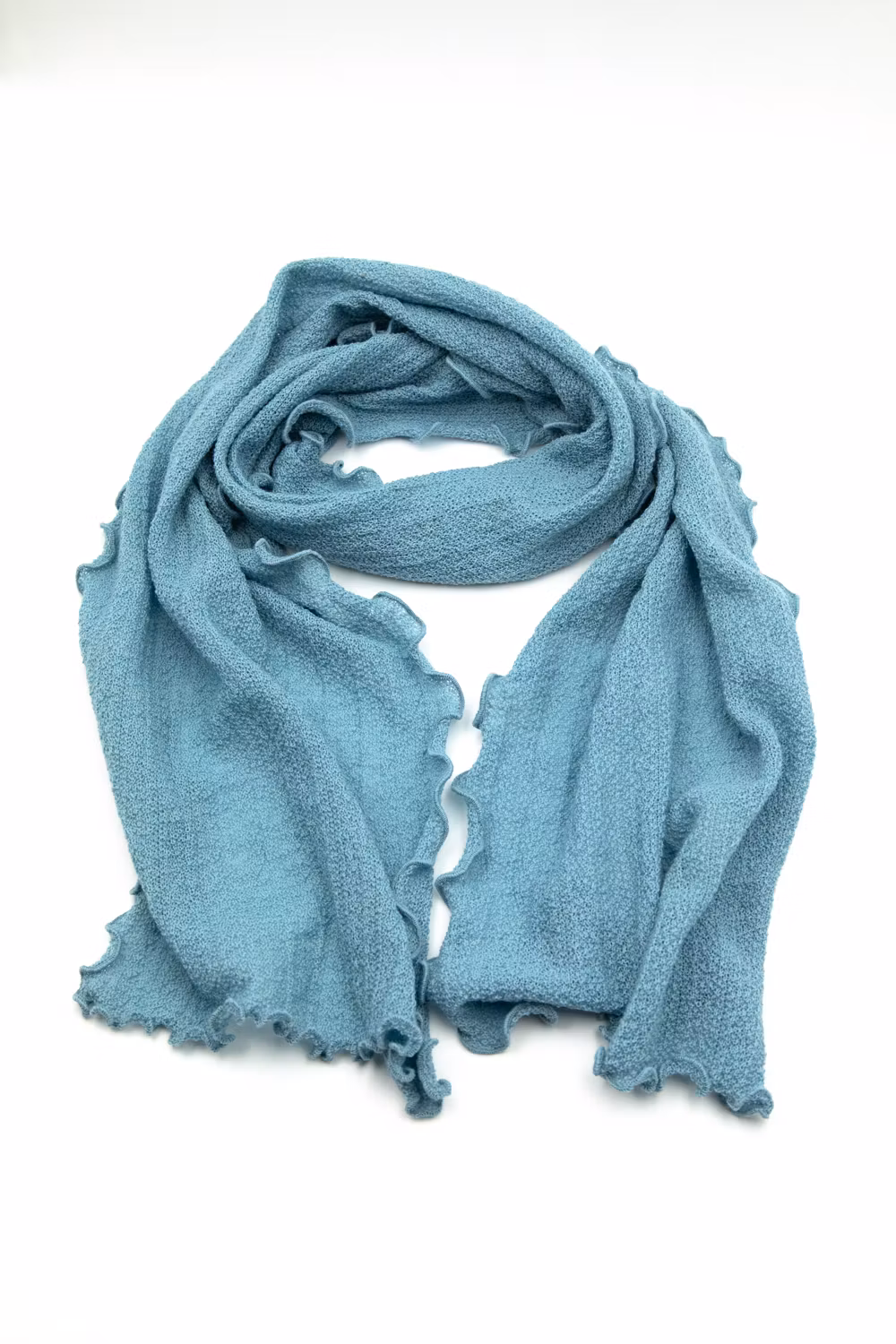 Rak sjal i vår mosstickning 190 x 30 cm. Färg Aqua, 100% ull.