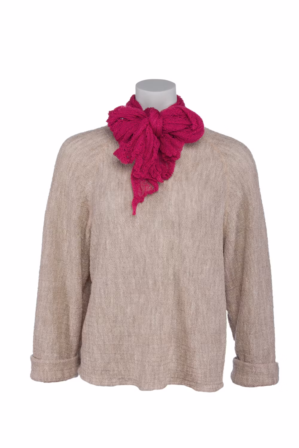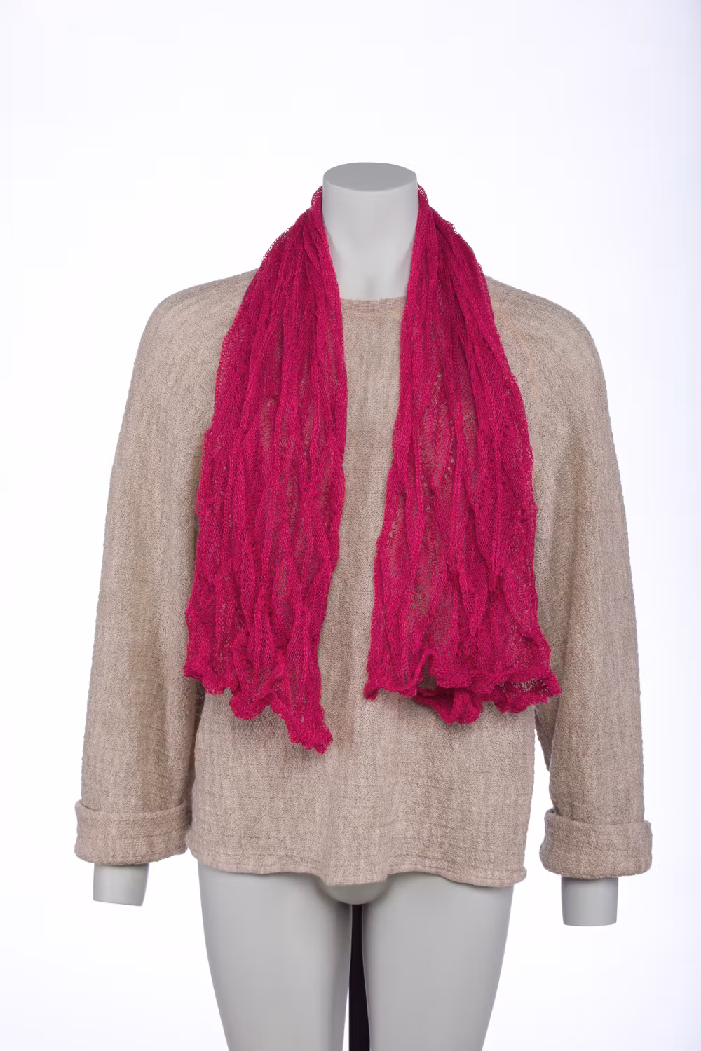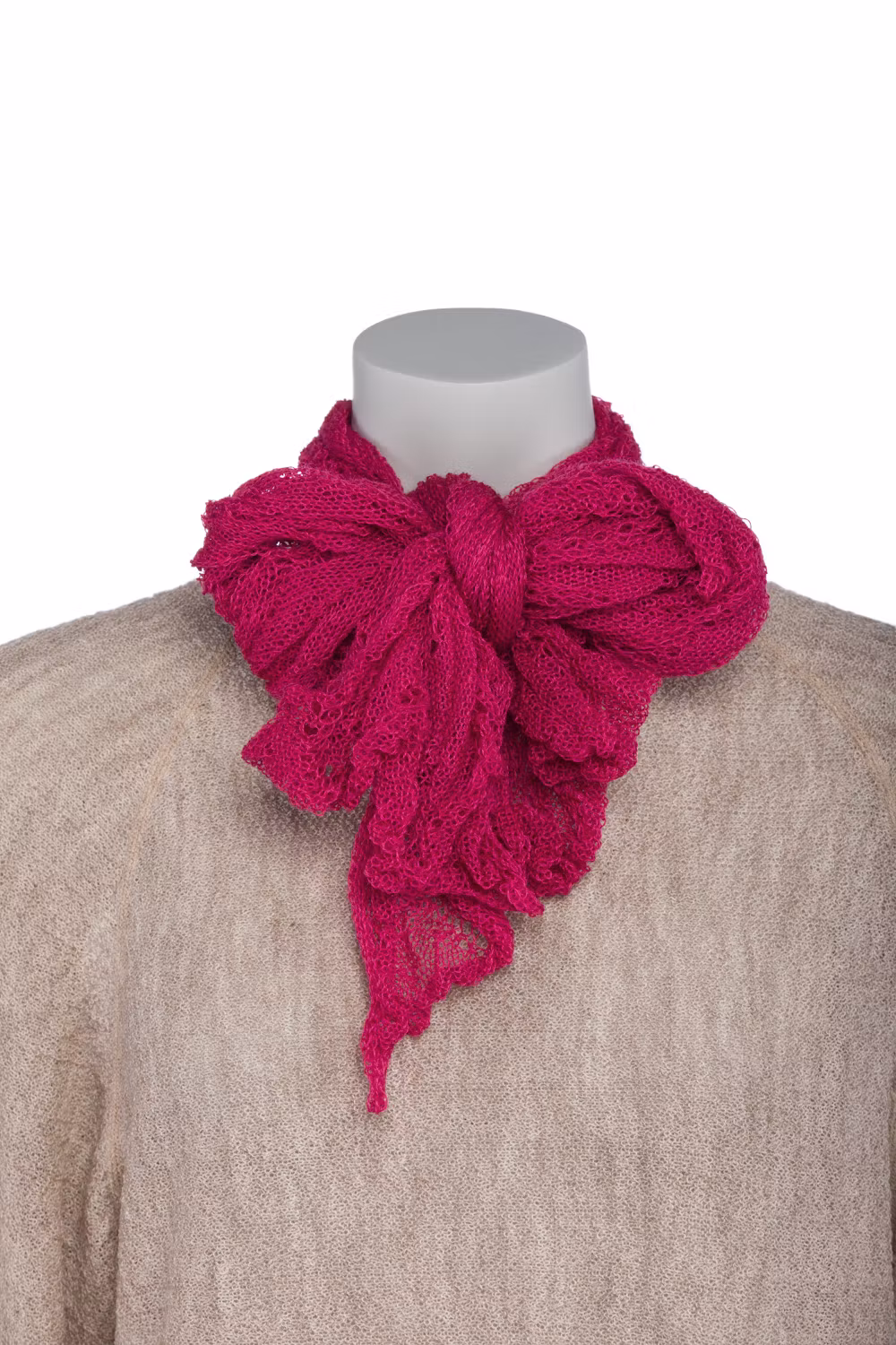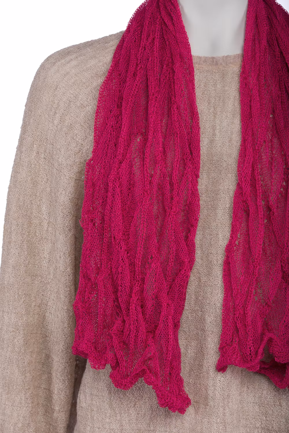 Sjal i lätt och skir spetsstickning. 100 x 30 cm.