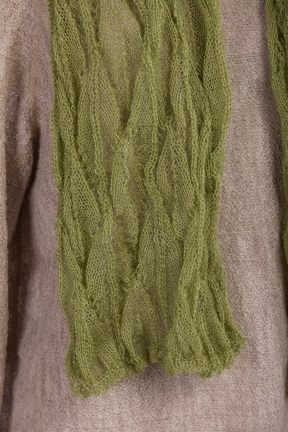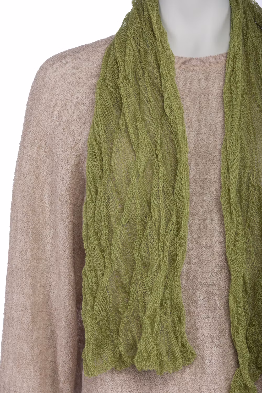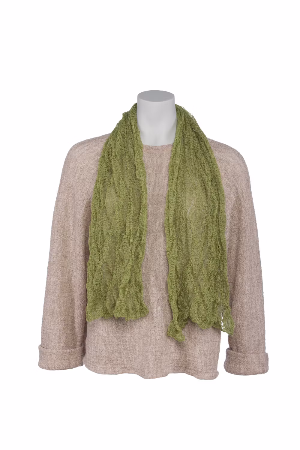 Sjal i lätt och skir spetsstickning. 100 x 30 cm.