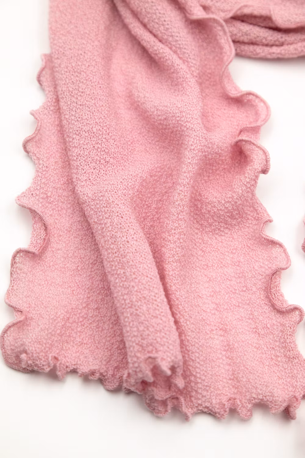 Rak sjal i vår mosstickning 190 x 30 cm. Färg Ljusrosa, 100% ull.