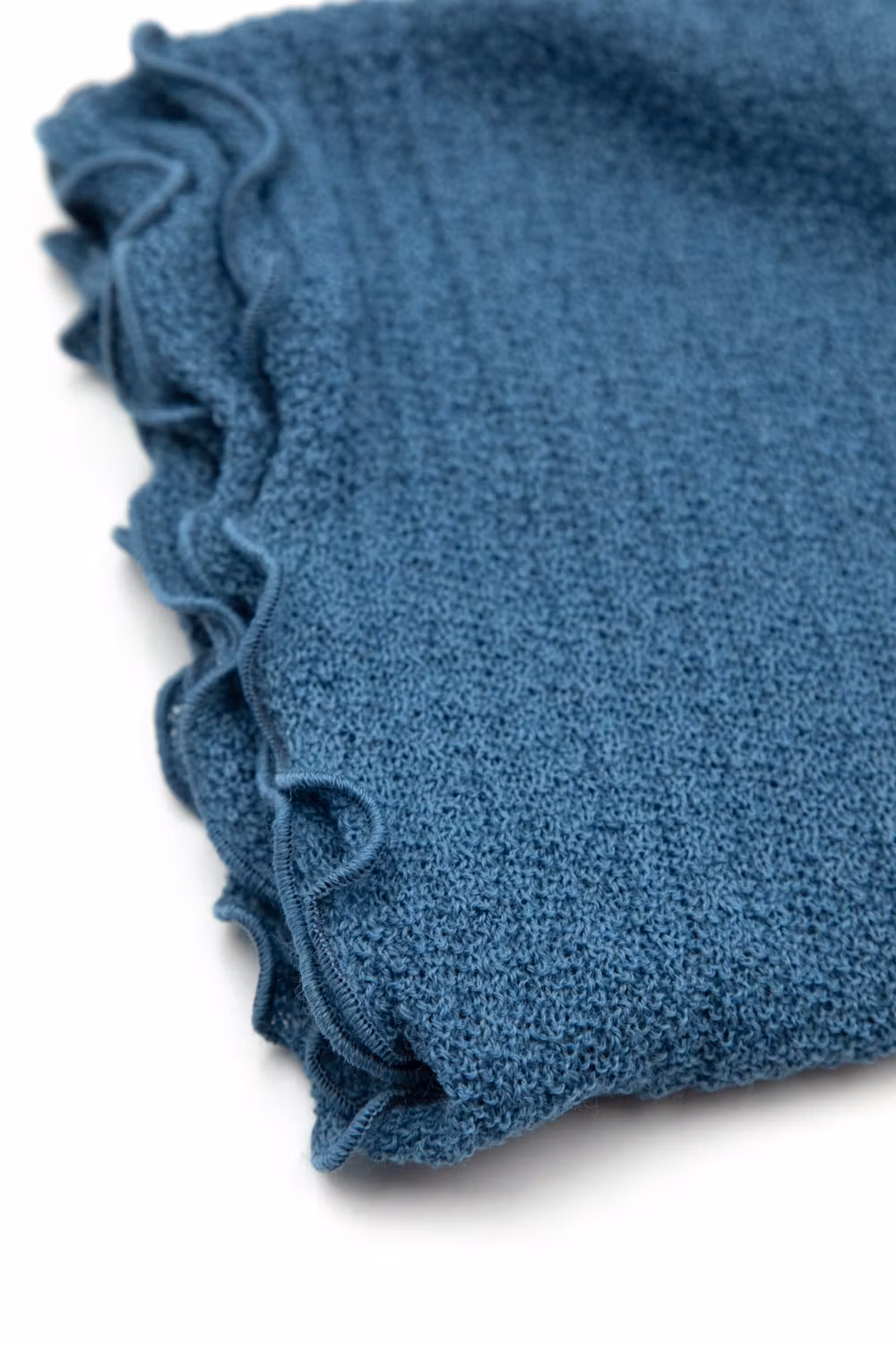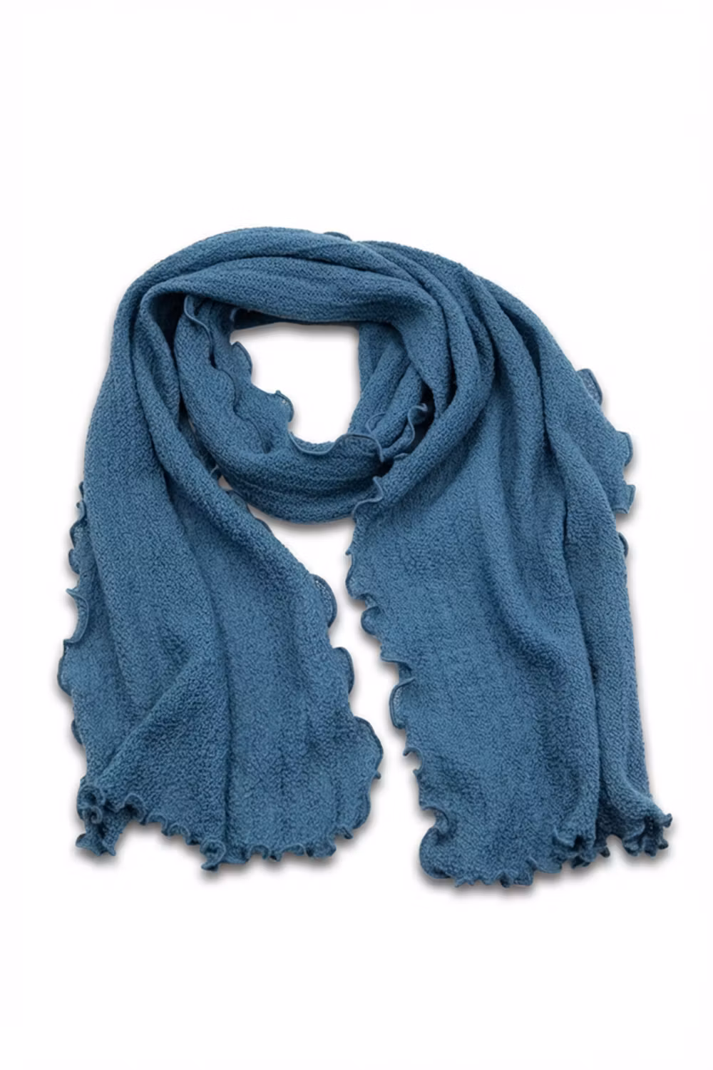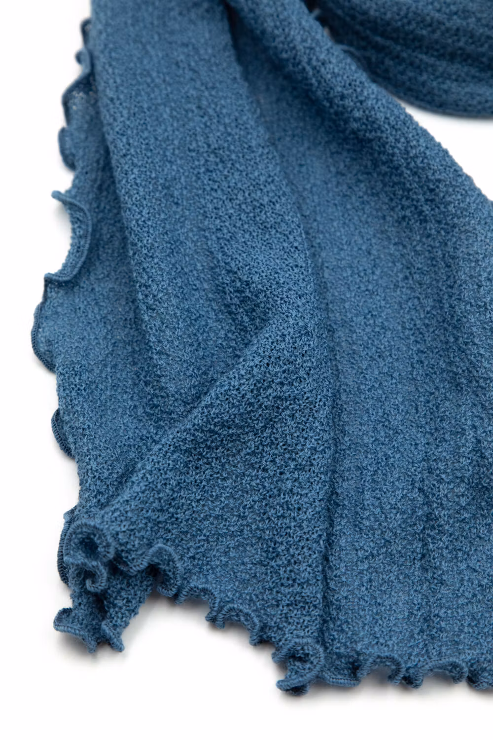 Rak sjal i vår mosstickning 190 x 30 cm. Färg Duvblå, 100% ull.