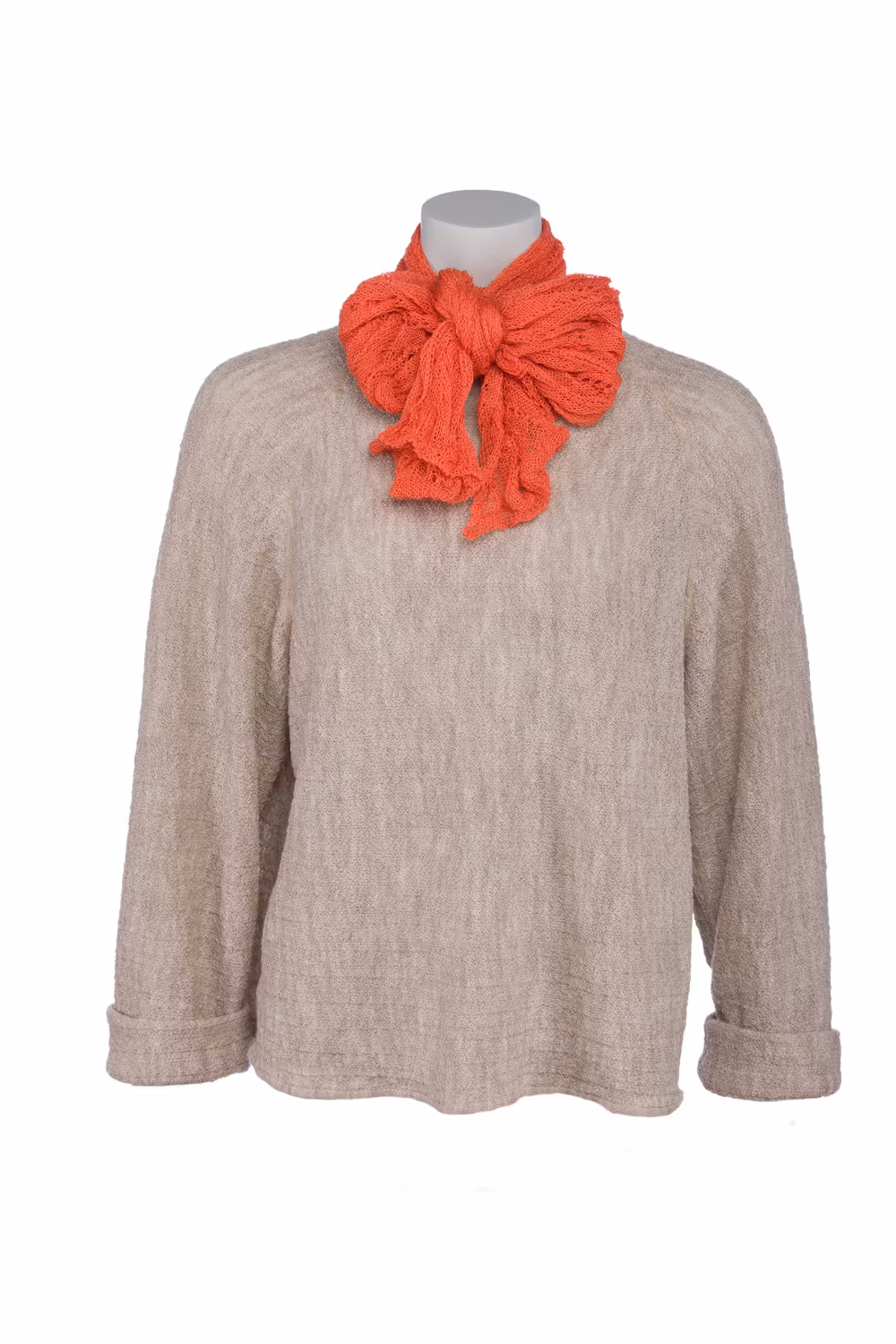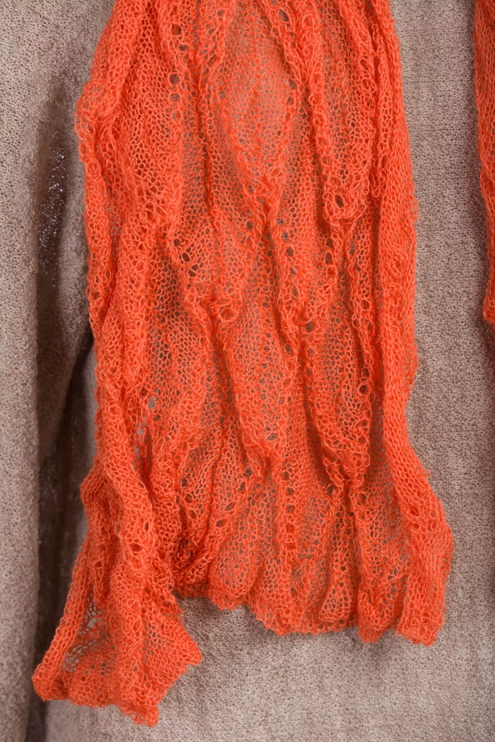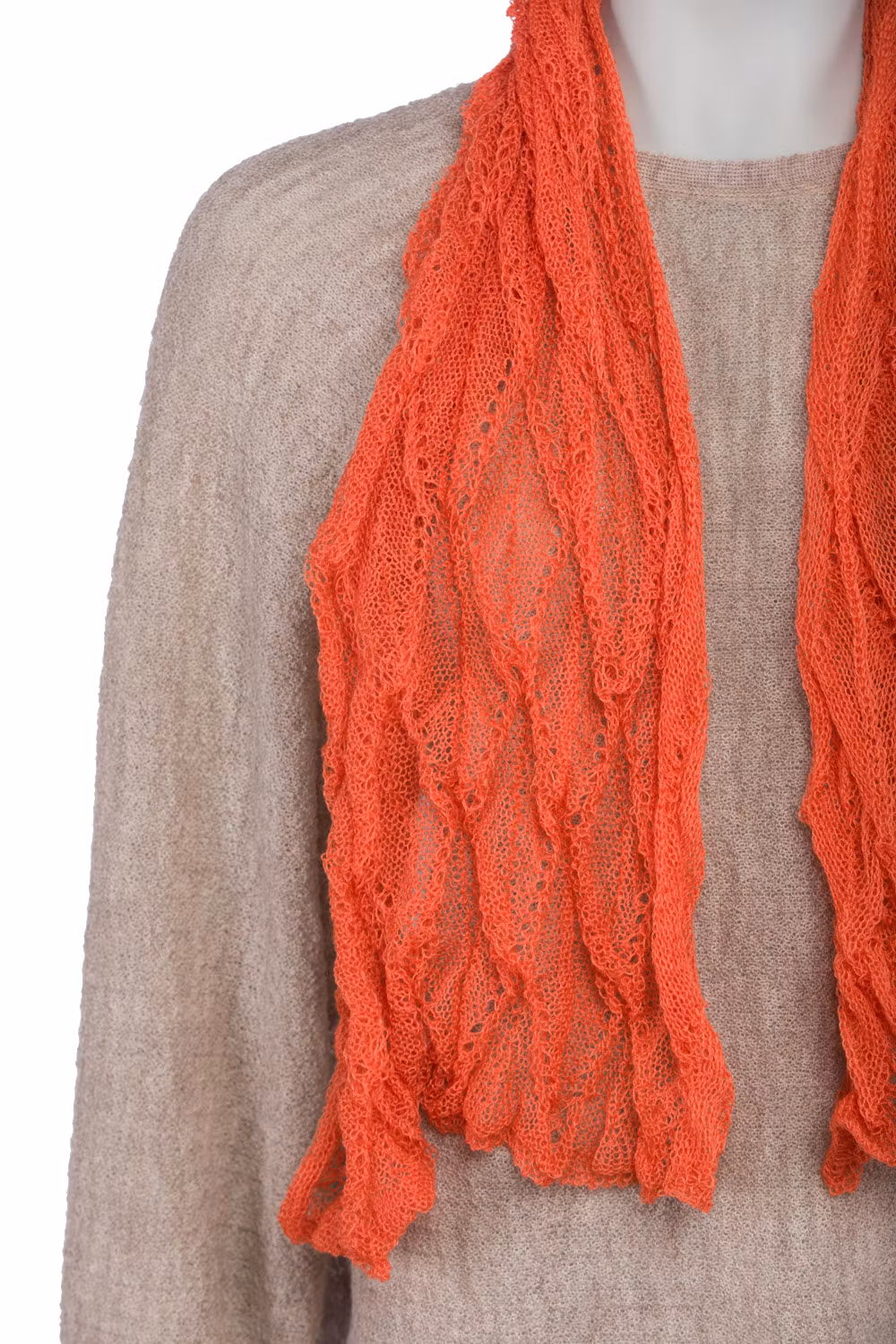 Sjal i lätt och skir spetsstickning. 100 x 30 cm.
