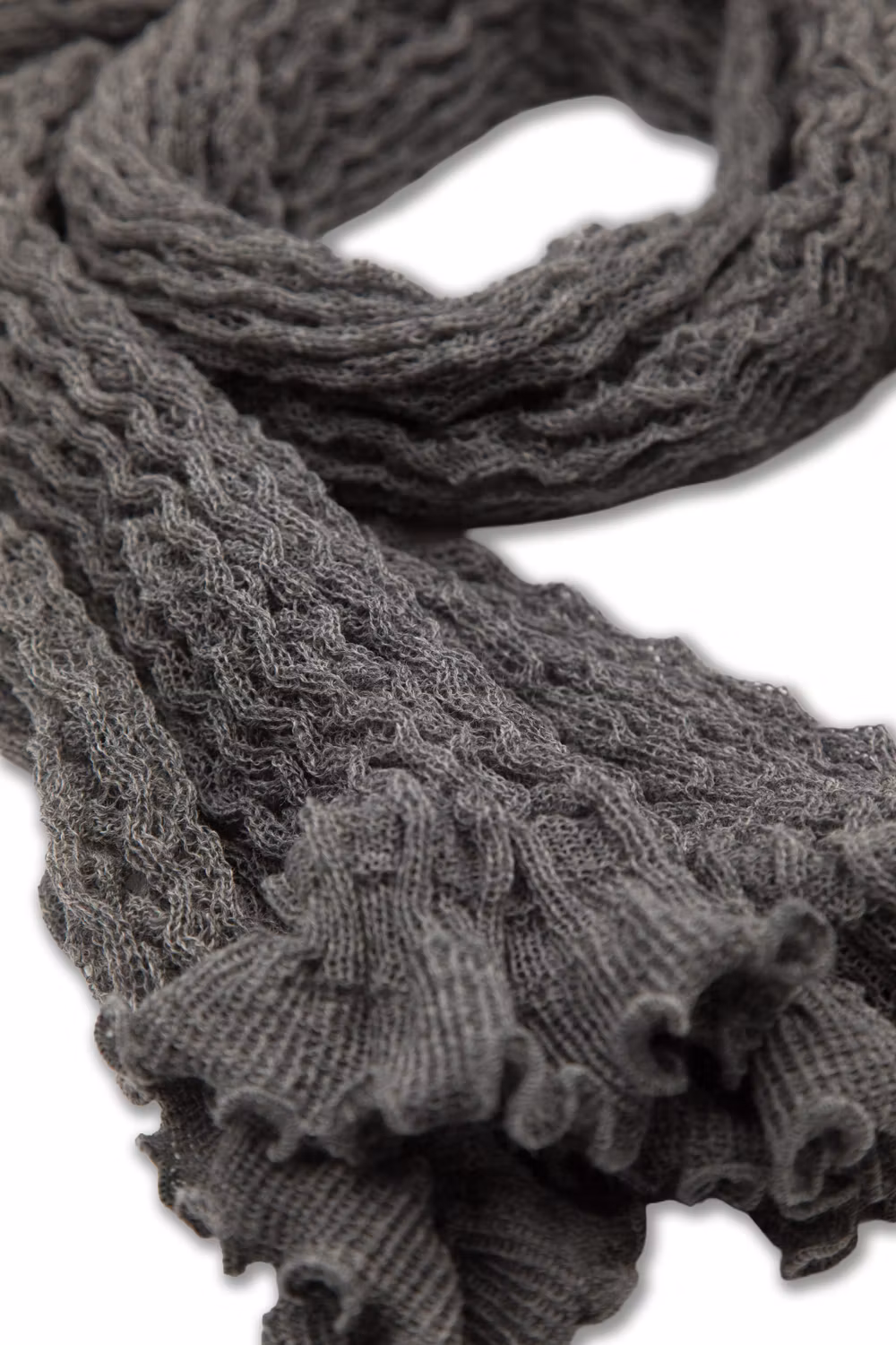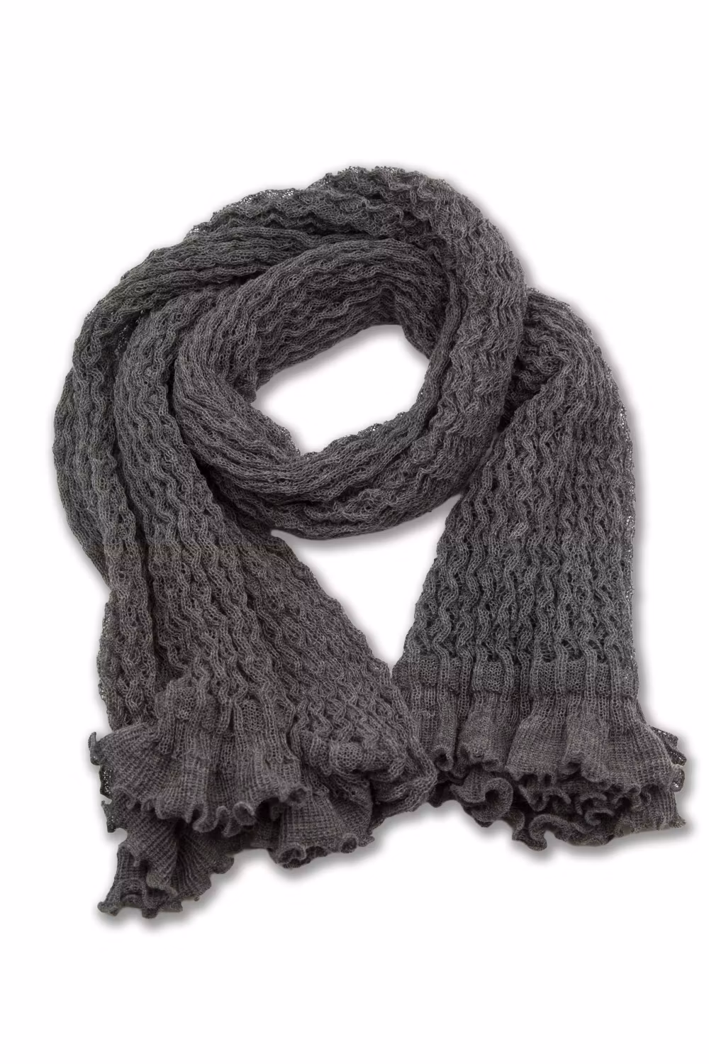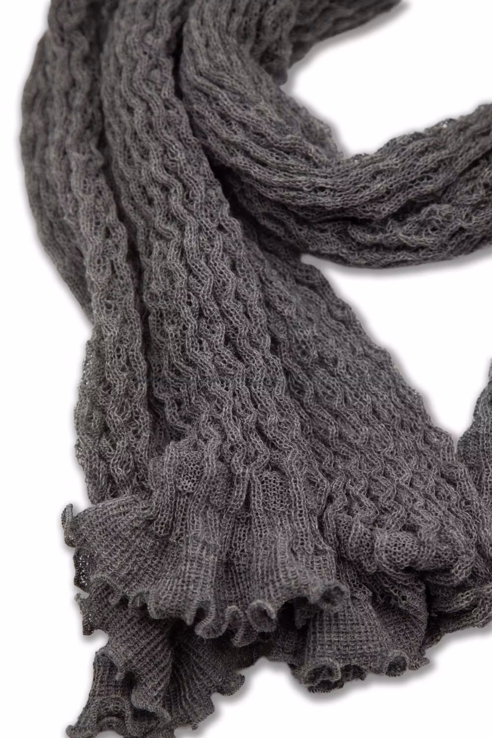 Spetsstickad rak sjal. ca 170 x 45 cm. Färg Grå. 100% ull.