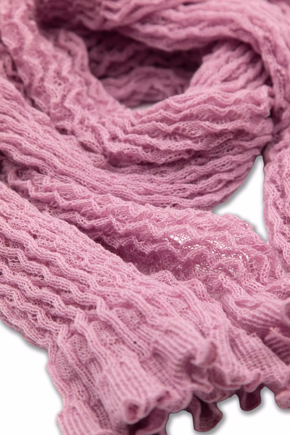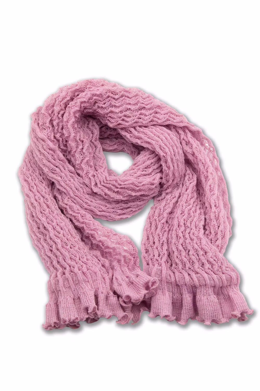 Spetsstickad rak sjal. ca 170 x 45 cm. Färg Rosalila. 100% ull.