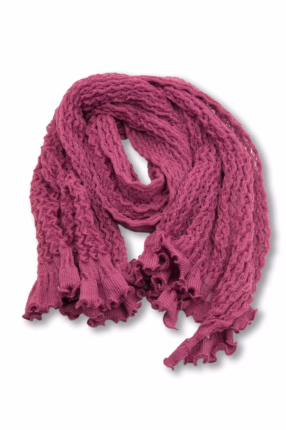 Spetsstickad rak sjal. ca 170 x 45 cm. Färg Ljung. 100% ull.