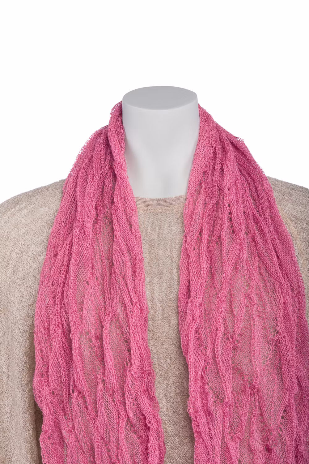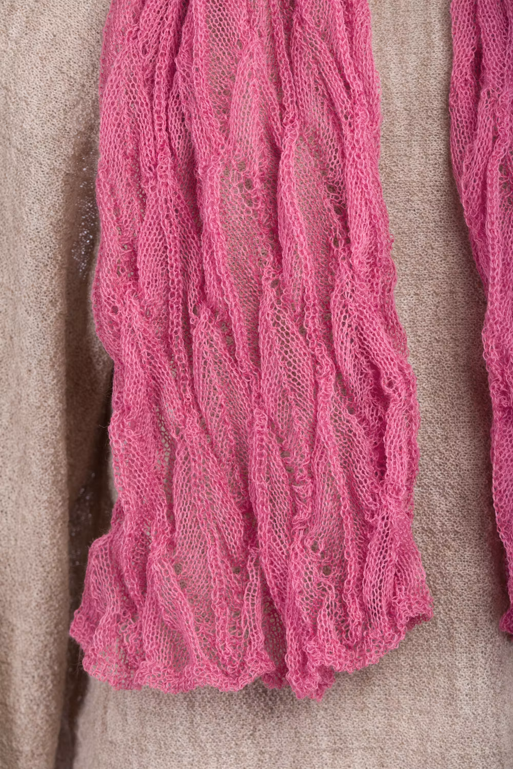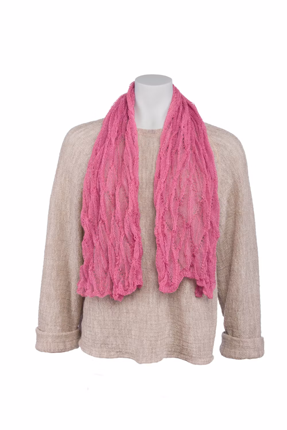 Sjal i lätt och skir spetsstickning. 100 x 30 cm.