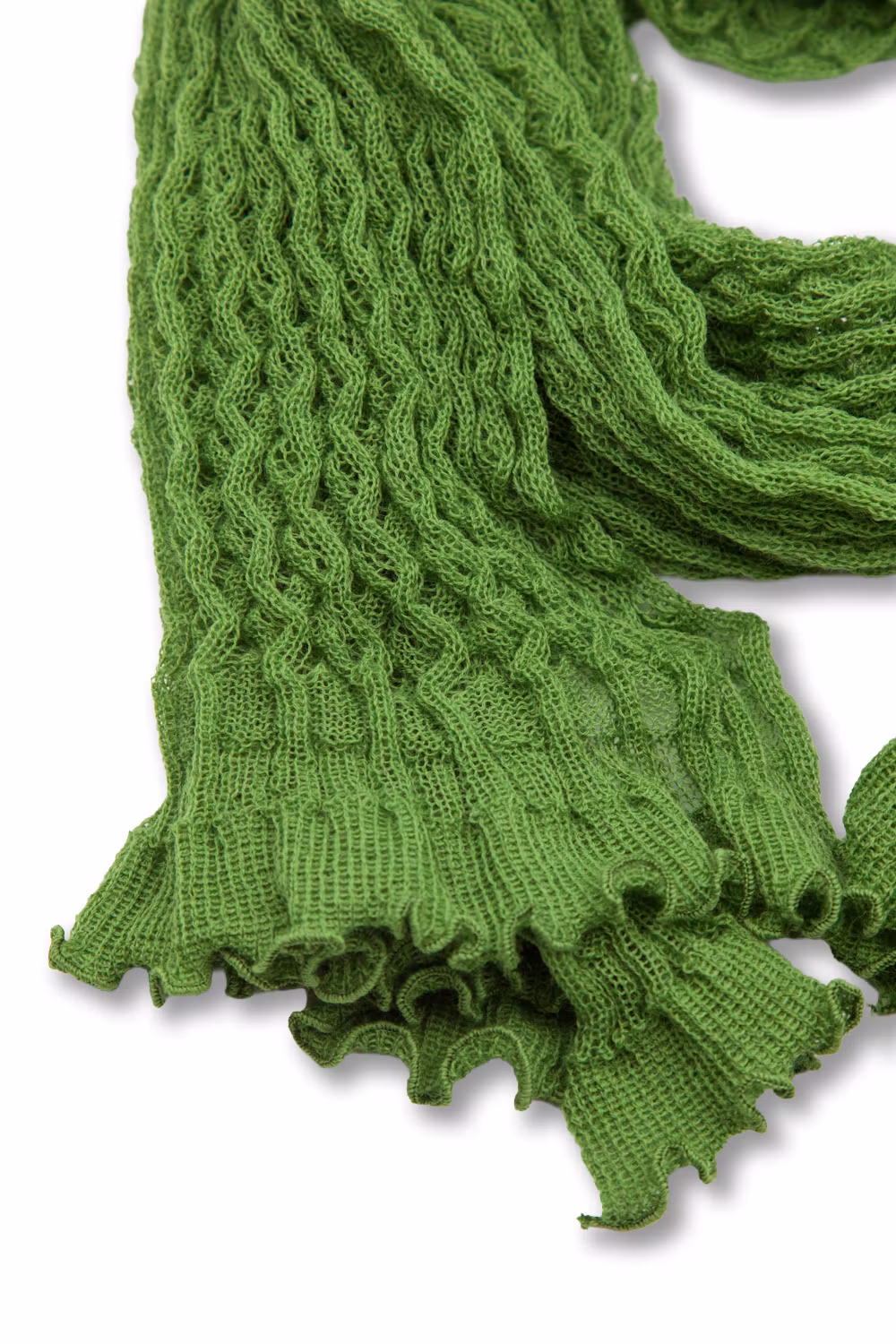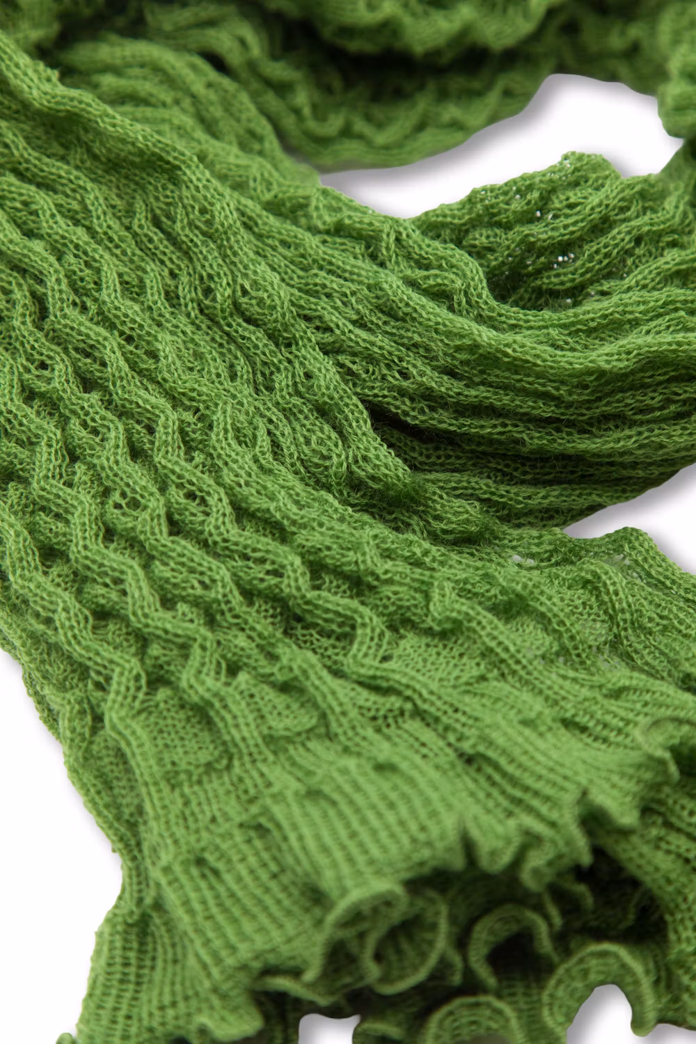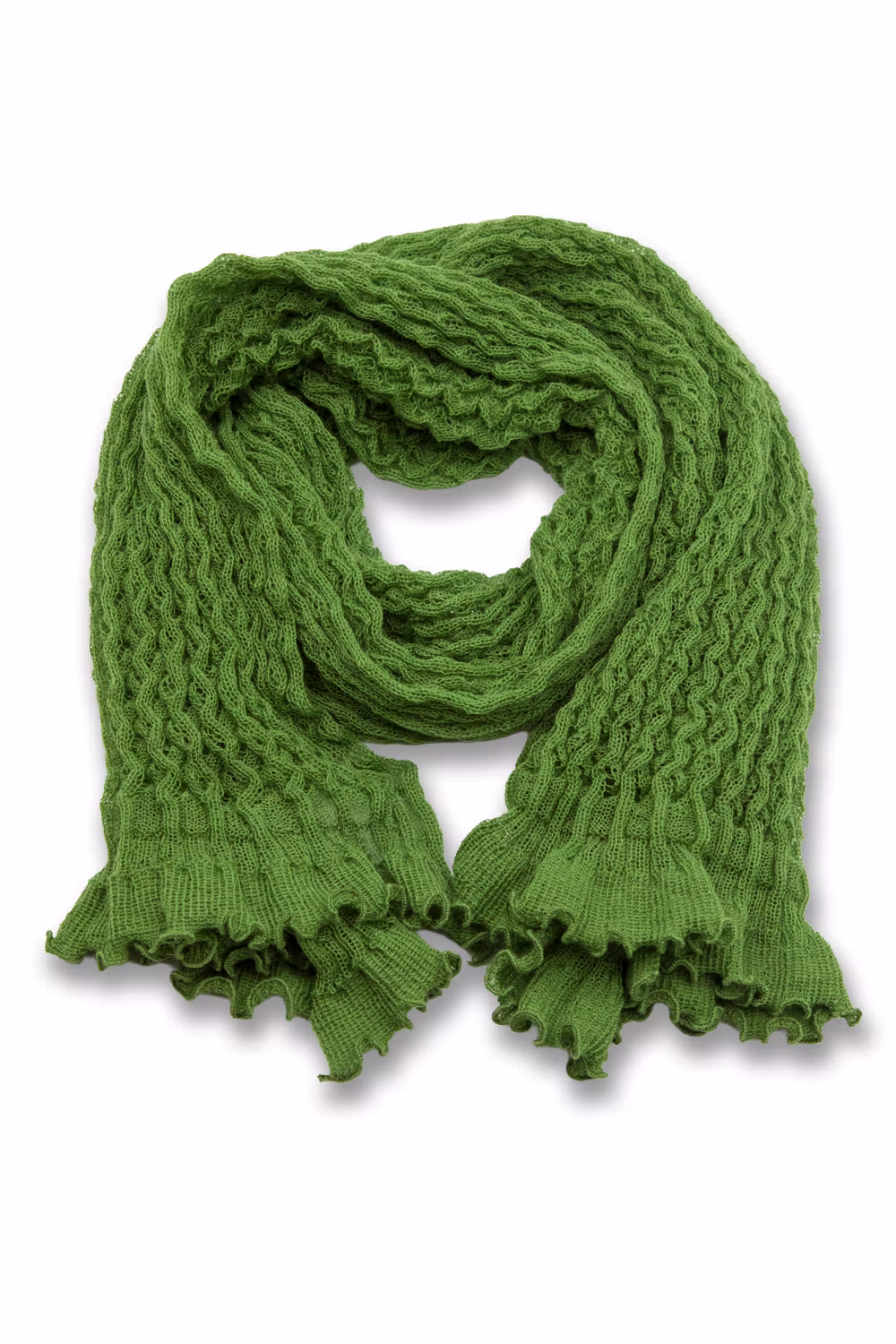 Spetsstickad rak sjal. ca 170 x 45 cm. Färg Ärtgrön. 100% ull.