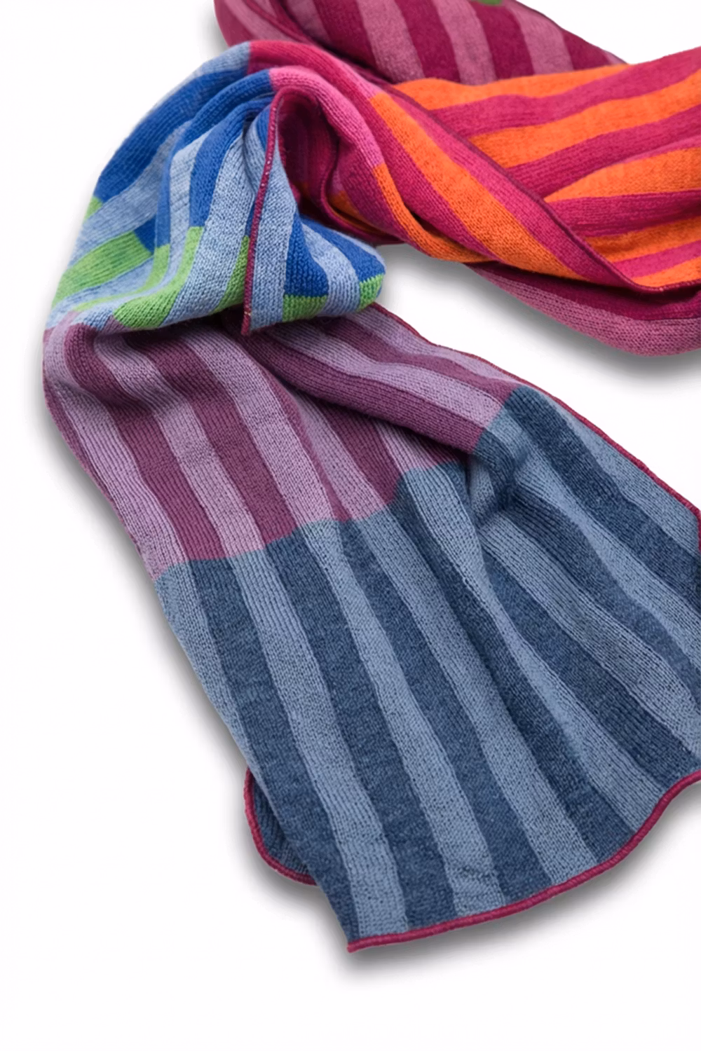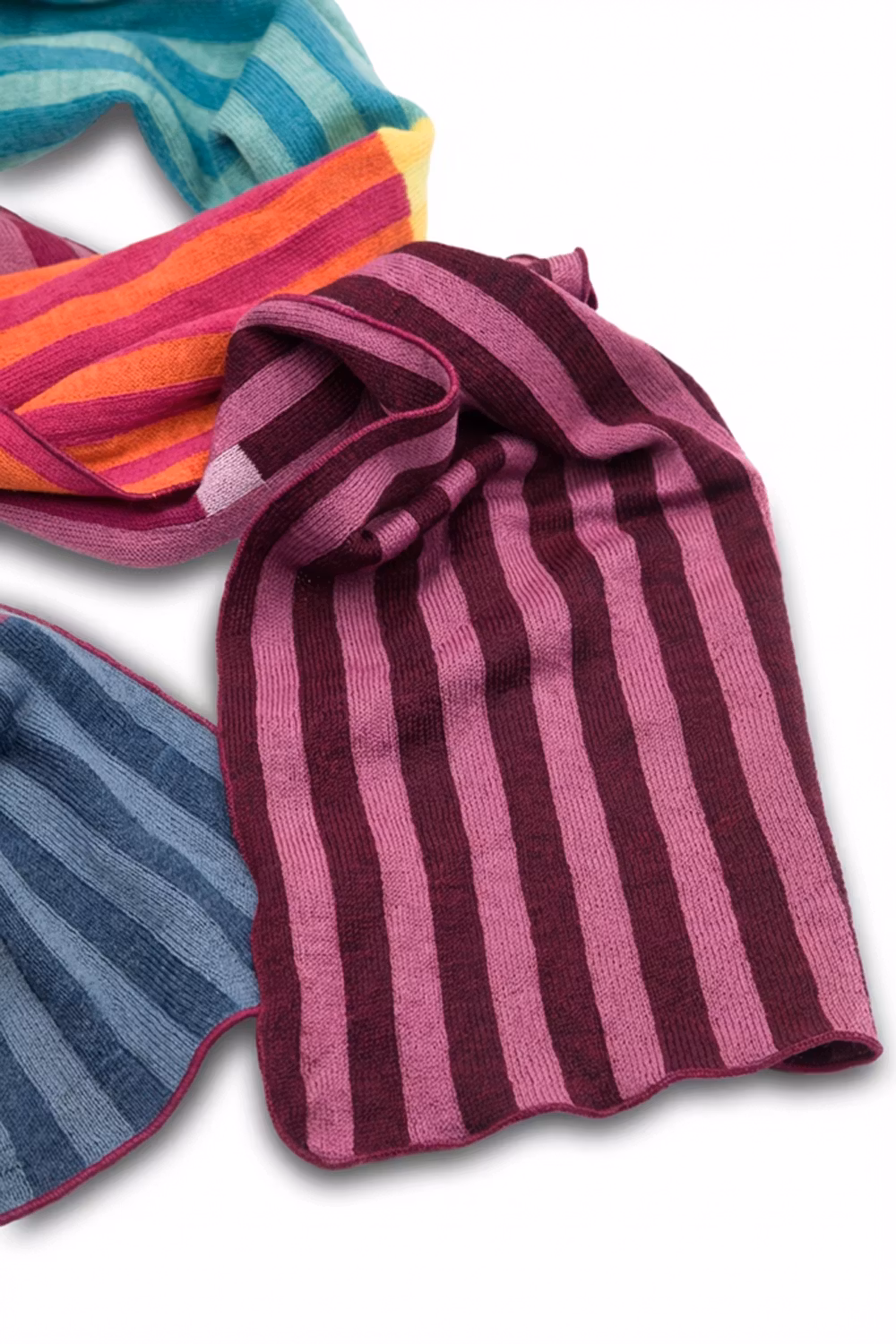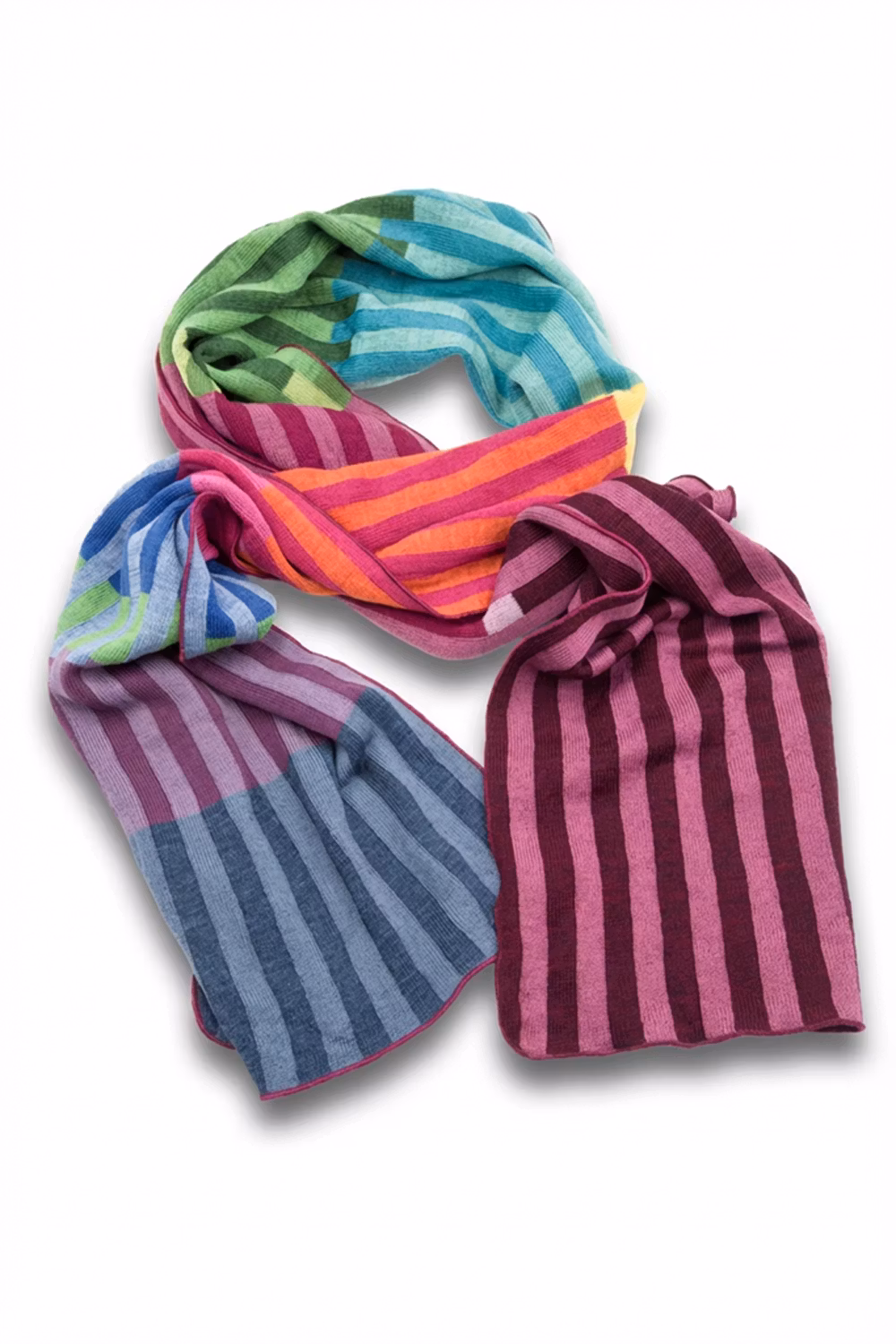 Unik halsduk i vår jacquardstickning. Vi använder restgarner från vår tygproduktion och därmed blir ingen halsduk den andra lik.
