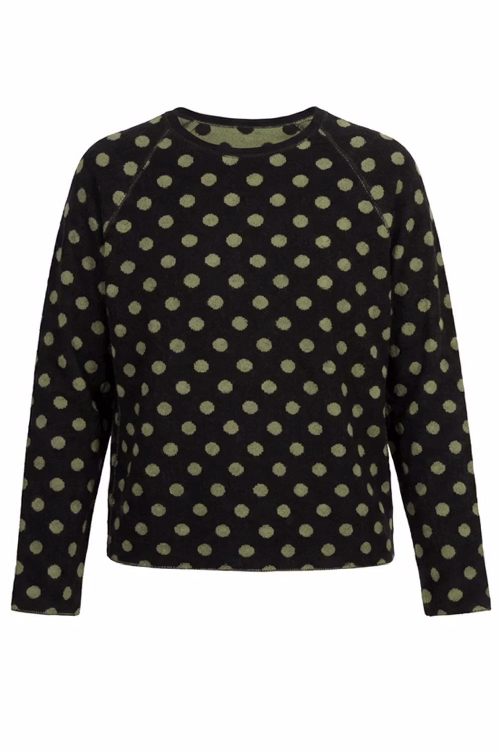 Vår baströja Daisy, en rak modell, i jacquardstickning. I vårt mönster Prick i svart / grön.