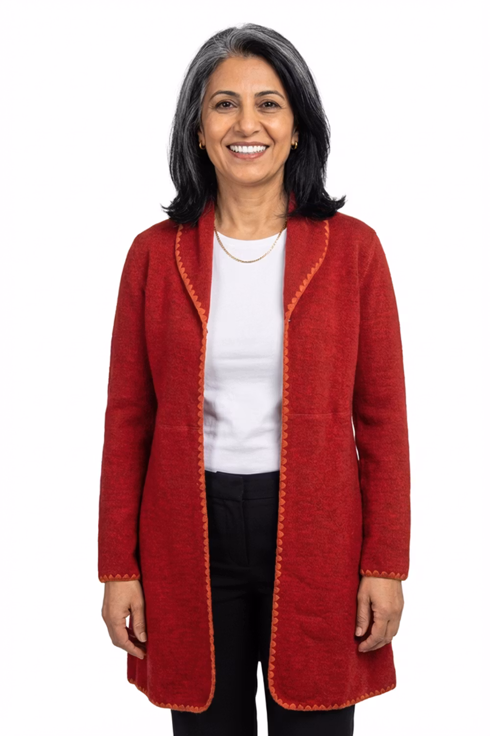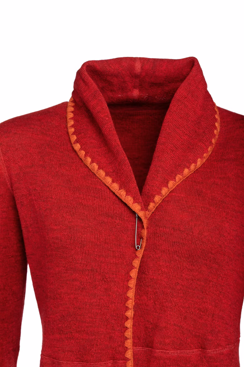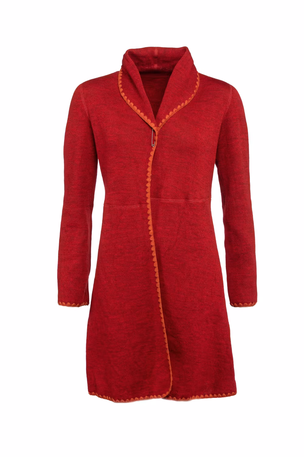 Kappan Eva-Lena i jacquardstickning. I färgen mörkröd. 100% ull.