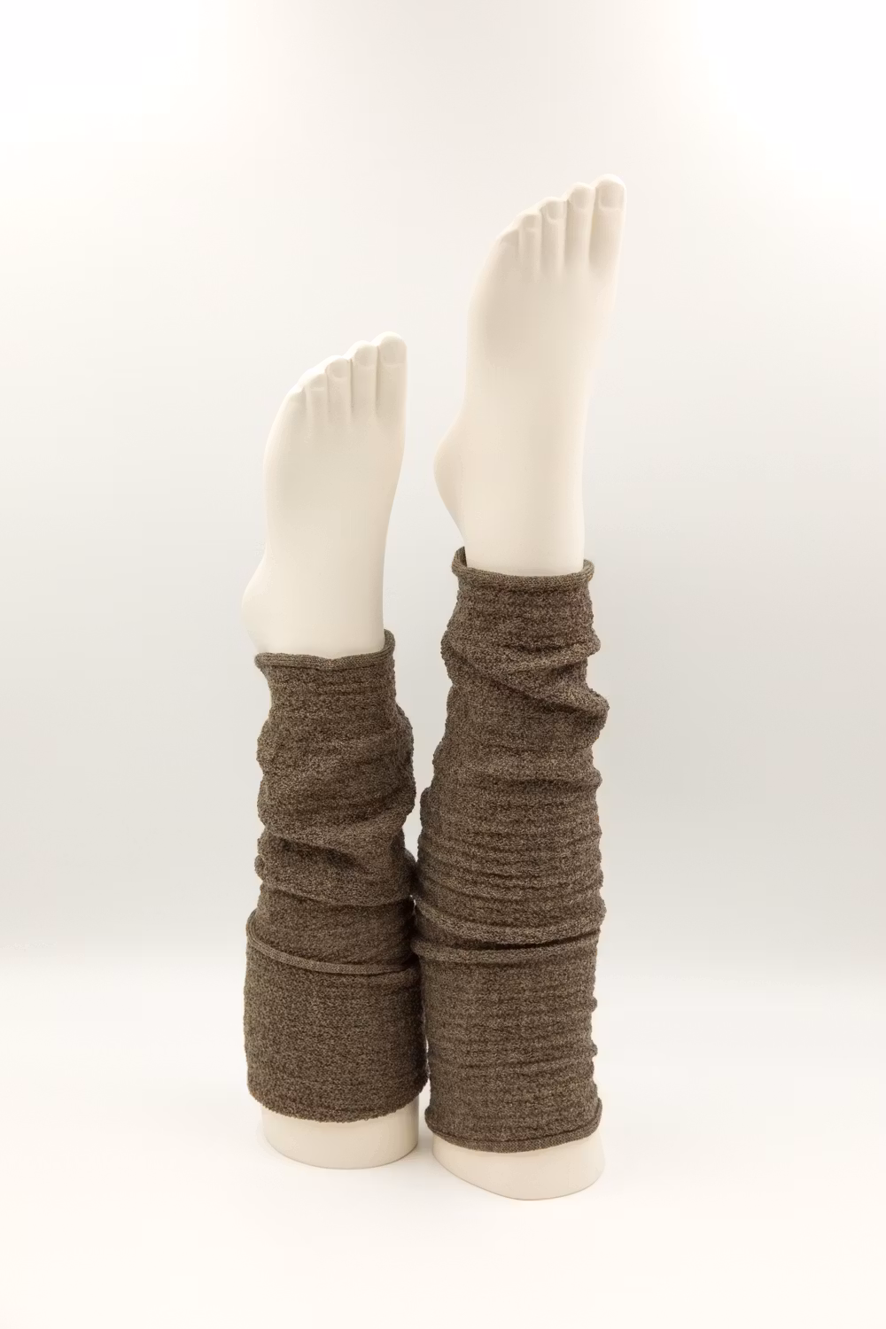 Benvärmare i vår klassiska mosstickning. 100% ull, ca 45 cm långa.