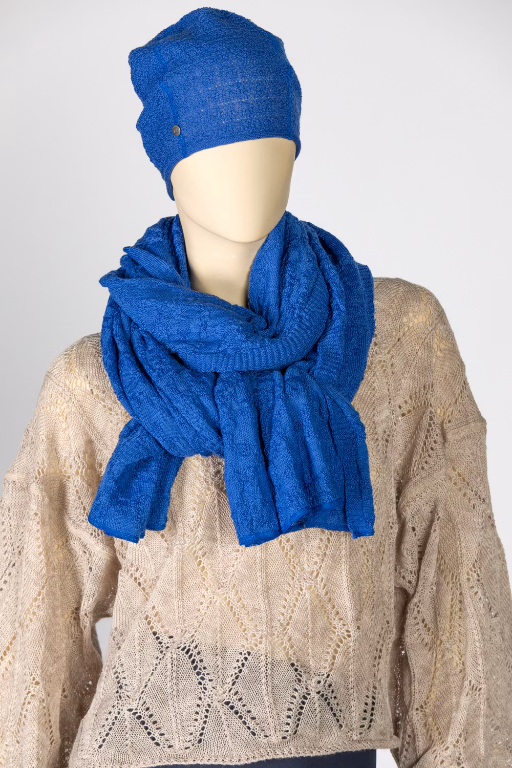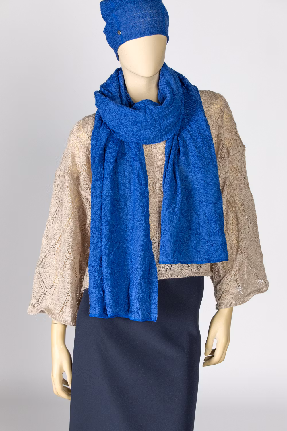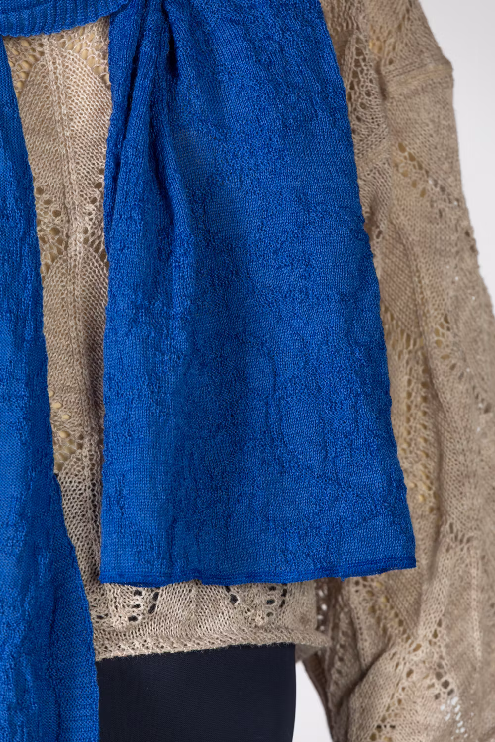 Rejäl och användbar sjal i vårt sticksätt Bark. 200 cm lång och 65 cm bred.