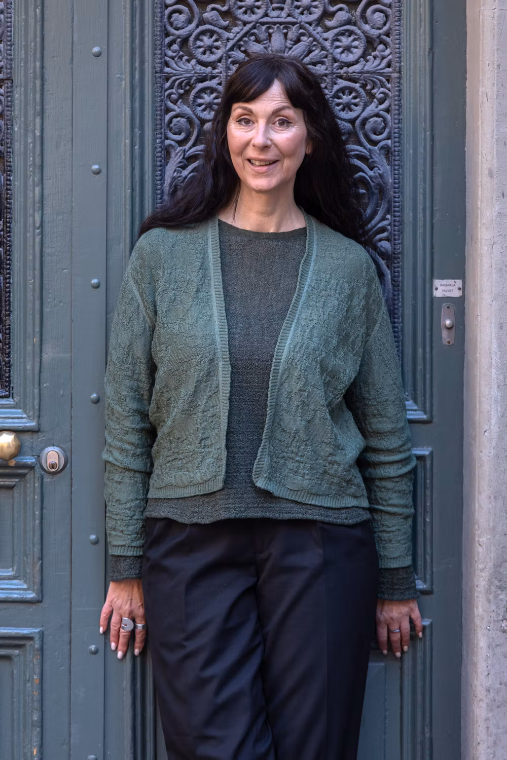 Lätt och skön kofta i vårt sticksätt Bark. Stängs med medföljande stor säkerhetsnål.